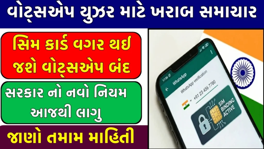 Sim Binding Rule India હેઠળ સરકાર દ્વારા નવો નિયમ અમલમાં મૂકવામાં આવ્યો છે, જેના મુજબ હવે સીમકાર્ડ વગર WhatsApp ચલાવવું શક્ય નહીં રહે. ડિજિટલ સુરક્ષા વધારવા અને ફ્રોડ રોકવા માટે આ મહત્વપૂર્ણ પગલું લેવામાં આવ્યું છે. છેલ્લા કેટલાક સમયથી ઓનલાઈન છેતરપિંડી, ફેક એકાઉન્ટ અને અનધિકૃત મેસેજિંગની ફરિયાદો વધતી હતી, જેને ધ્યાનમાં રાખીને આ નિયમ લાગુ કરવામાં આવ્યો છે.